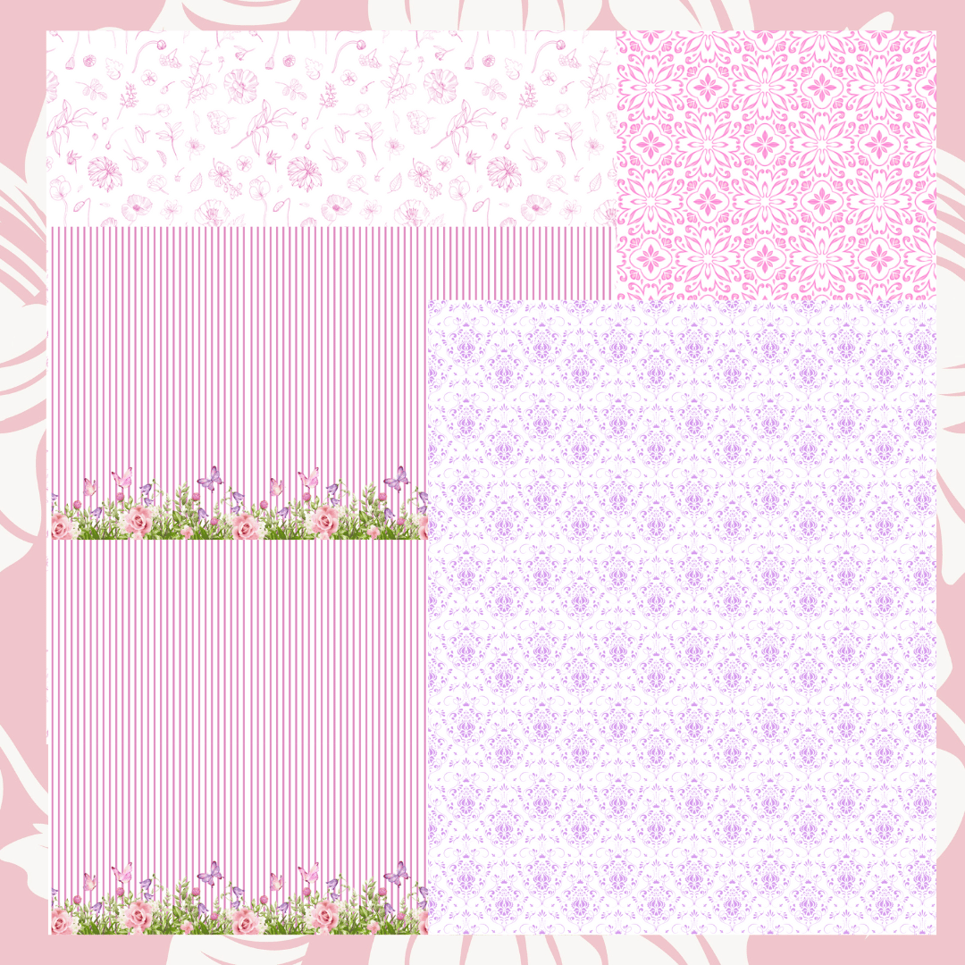 This pink and purple wallpaper collection is designed to print on 8" x 11" paper. These beautiful wallpapers I designed for my first dollhouse that I had fun remodeling. Now I would like to share these unique designs with others who are also in the miniature dollhouse hobby...