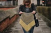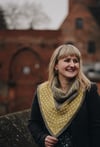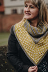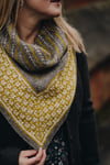 The cowl begins like a simple garter shawl and continues in the round with a decorative mosaic pattern, finished with a garter border.
