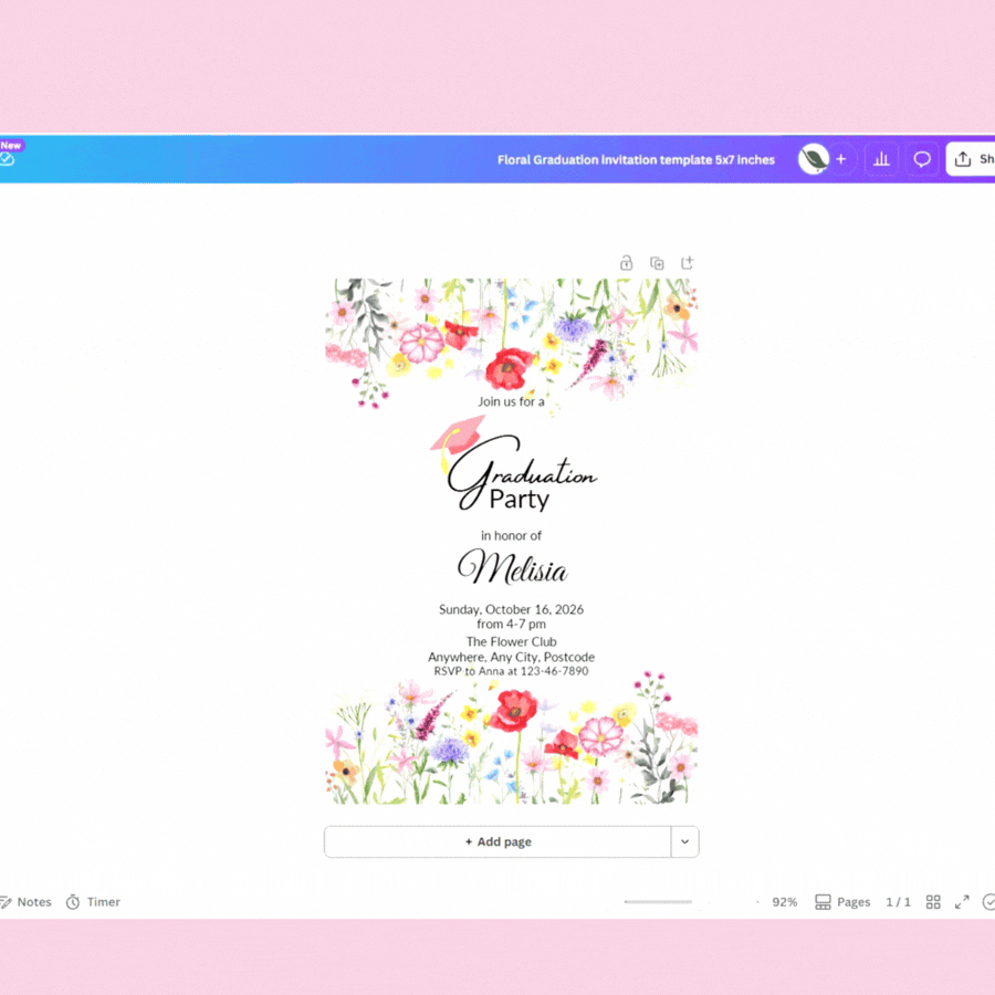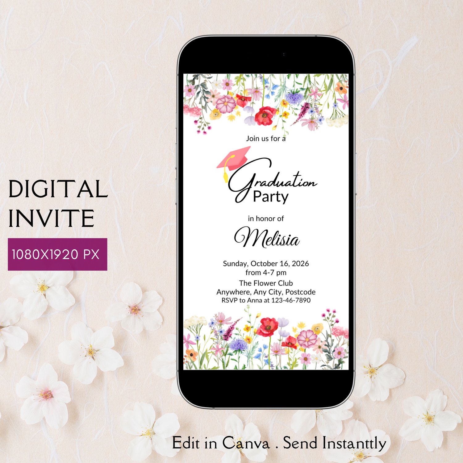 - Floral Graduation Invitation Template 1080x1920px (good for most smartphones)