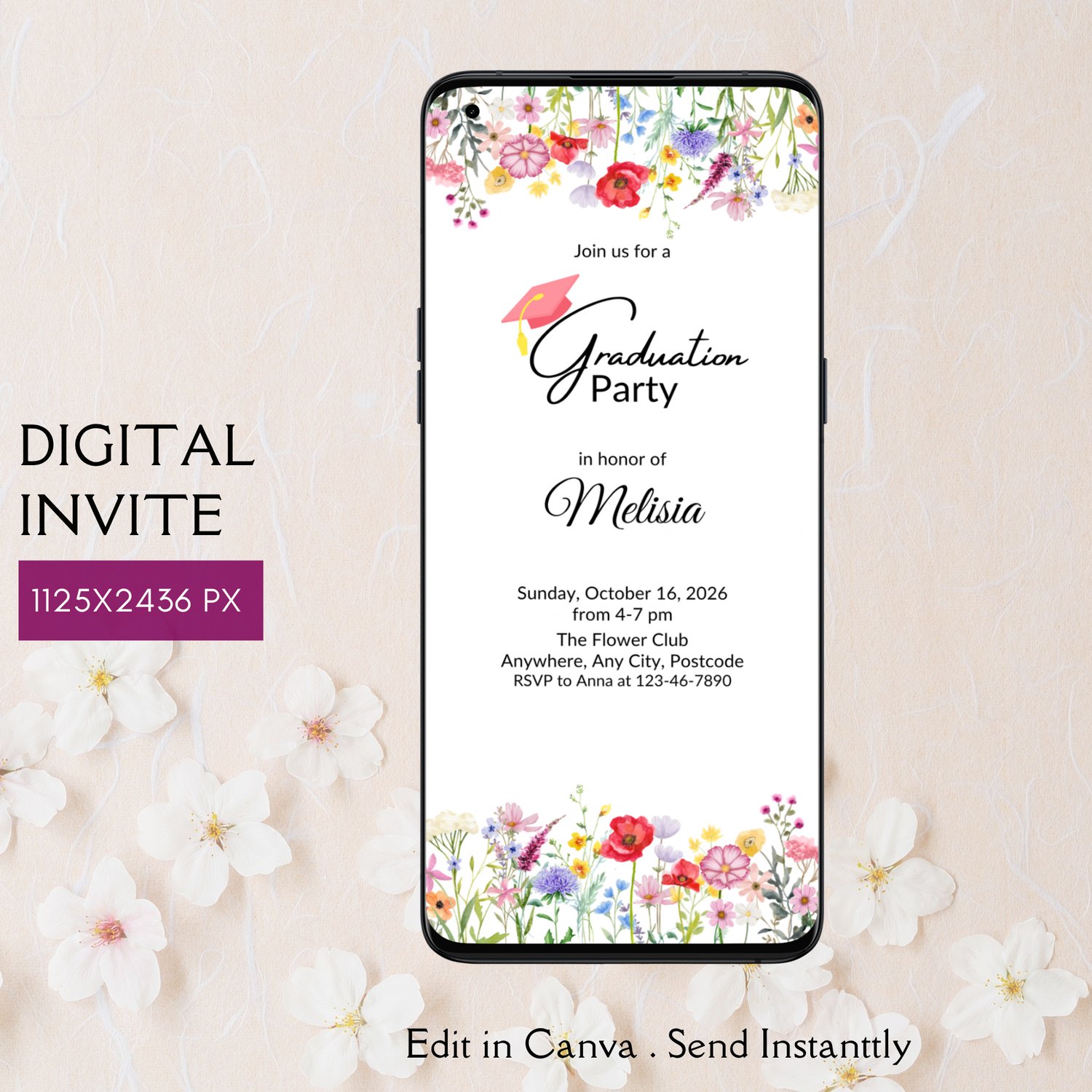 - Floral Graduation Invitation Template 1125x2436px (good for iPhone X and up)