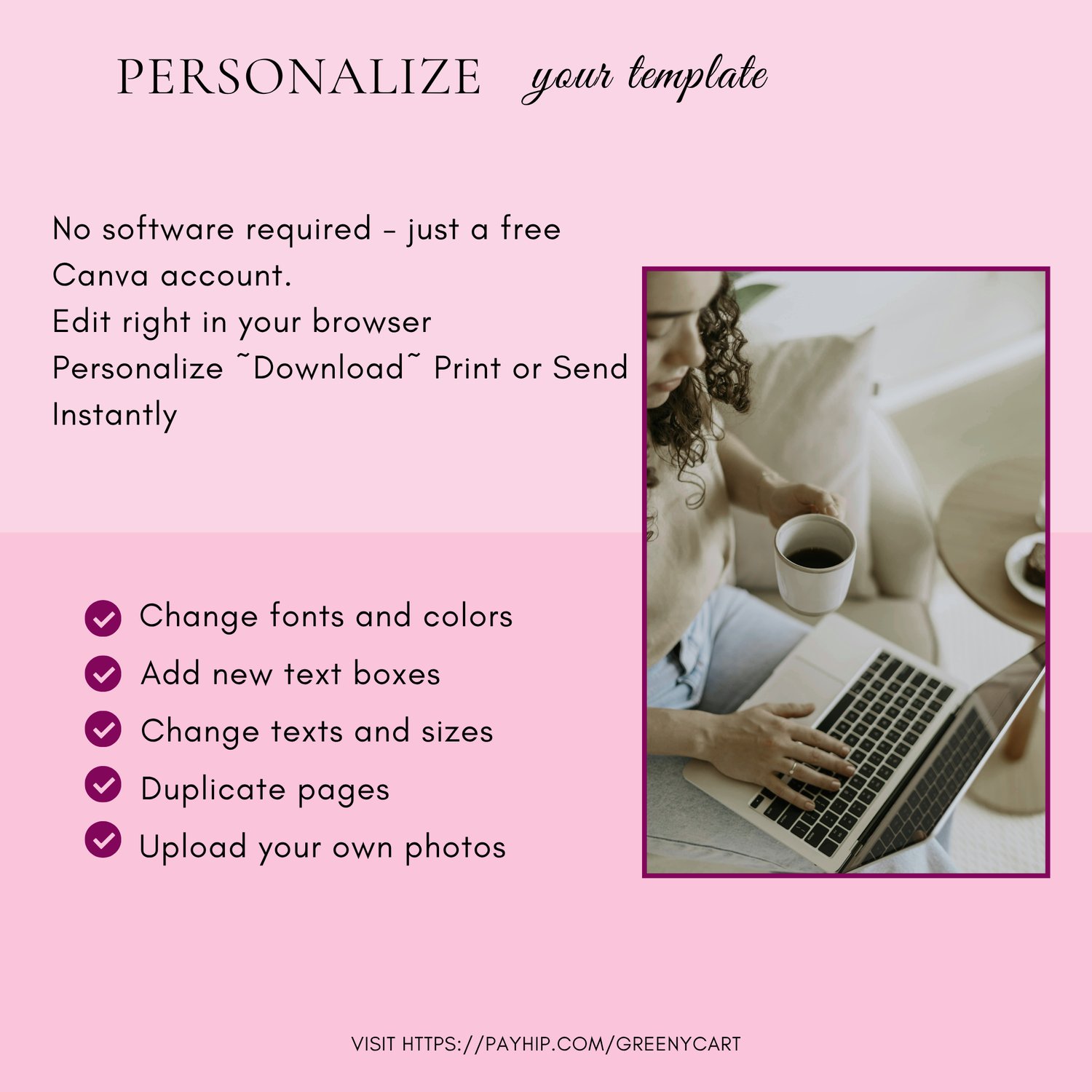 Instant download after payment. Start editing immediately