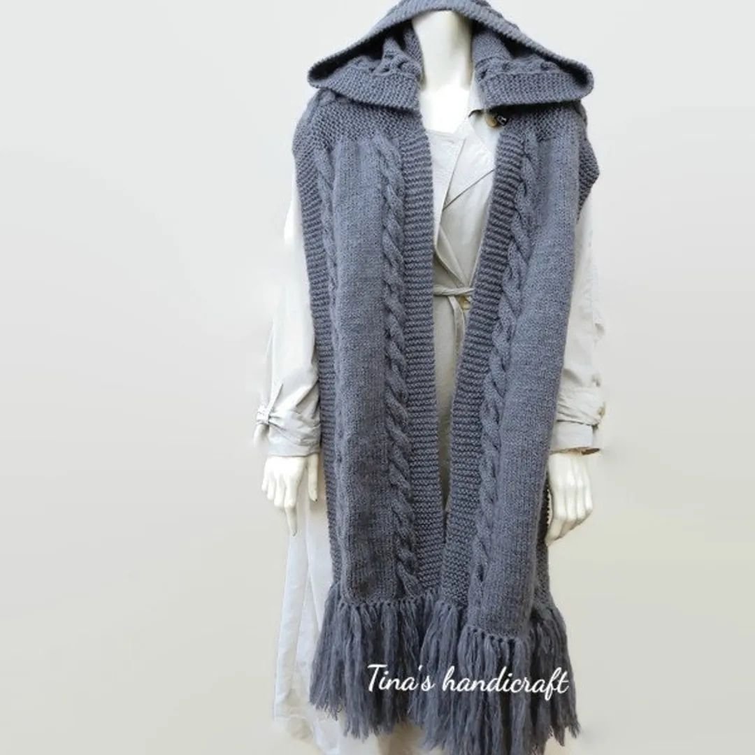 Hooded scarf you don't know where to look first - at the heavy fringes or at the shoulders, where you can just about make out the beginning of a cape. But you know for sure, that's pure refinement!