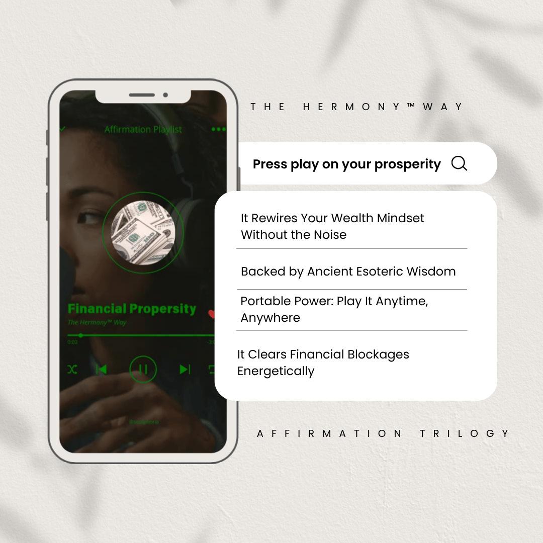 Not just affirmations—this is frequency work. Introducing The Hermony™ Affirmation Trilogy, a curated bundle of three 3-minute audio mantras designed to align your mind, body, and energy with your highest self. Each MP3 is a portable ritual—crafted for those who crave clarity, calm, and cash flow without the noise of ads or subscriptions.