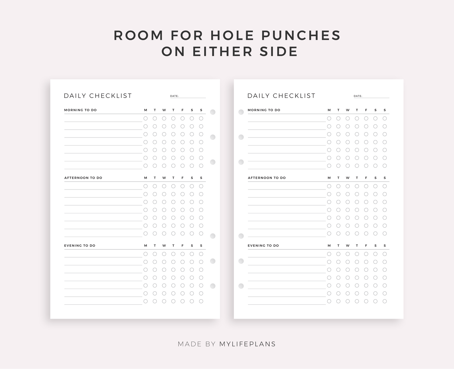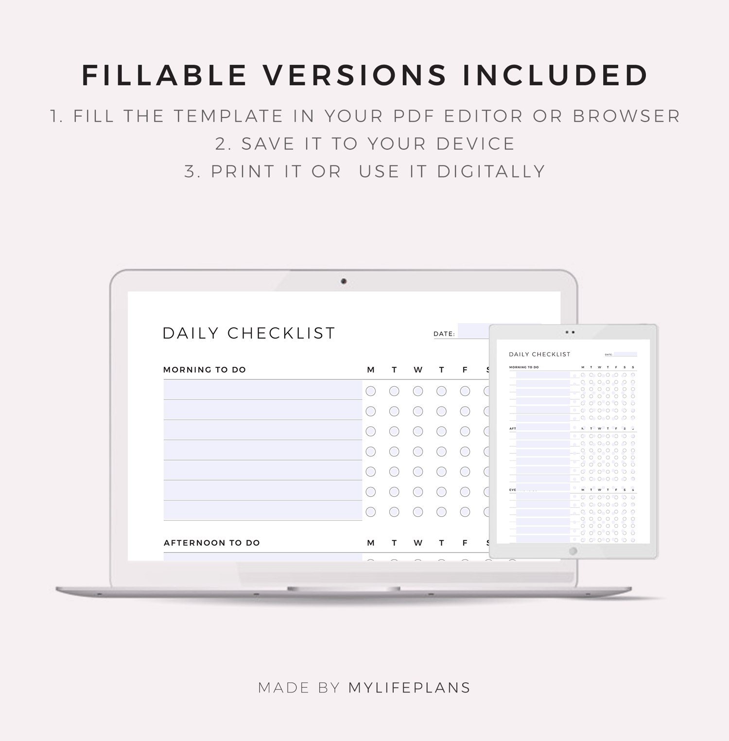 Daily Checklist Template, Daily To Do List, Task List, Planner Inserts, Printable & Fillable, A4/Letter Size