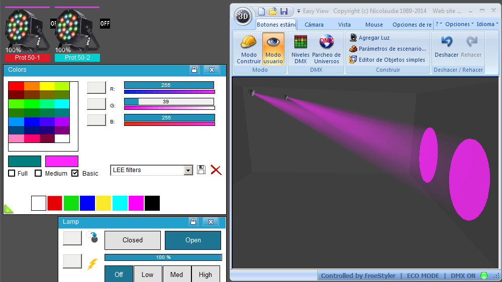 Esta Librería SSL2 está optimizada para trabajar con Magic 3d Easy View. Es decir para ver una representación 3D de las secuencias que estemos realizando con Freestyler, QLC+ o cualquier otro soft que se conecte con Magic 3d.
