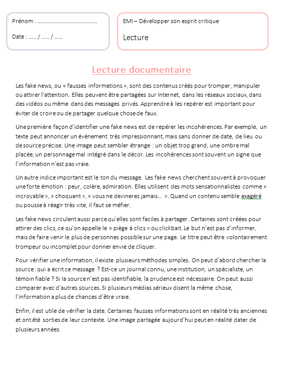 đ Objectif de la sĂ©quence : dĂ©velopper lâesprit critique face aux informations au Cycle 3