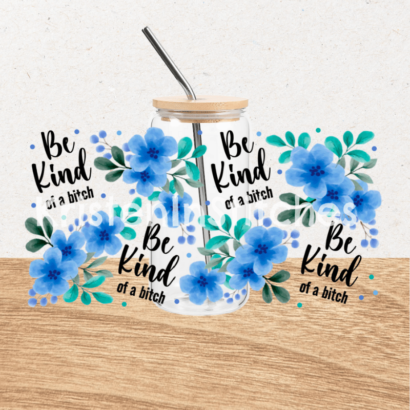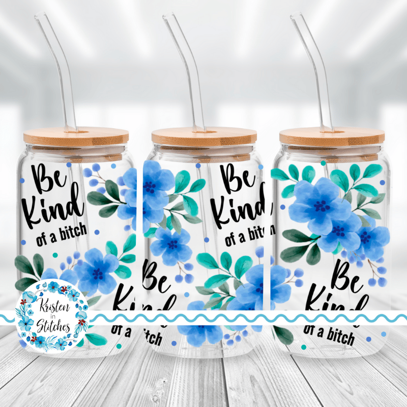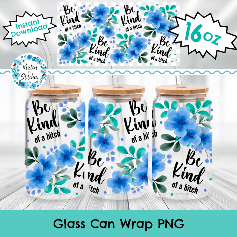 Be Kind of a Bitch Glass Can Wrap Transparent Cup PNG, Pretty Floral Profanities