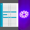 * En el modo de 13CH Verifique, con una Librería de pruebas (click), que coincidan estos canales: 6 Dimmer, 8 en el valor 80 = Color Violeta, 9 en el valor 6 = Gobo de Ventilador, 10 en el valor 128 = Prisma girando lento (ver tercer foto).