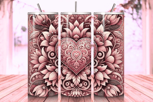 Pink Valentine's Heart Tumbler Wrap 20oz - Digital Download - Romantic Floral Design - Elegant Pink Love Theme - Valentine's Day Wrap PNG - 300 DPI