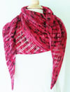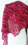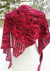 Red-Variegated Shawl shown in Miss Babs’ Yowza in the Wild Iris colorway Hugs and Kisses.