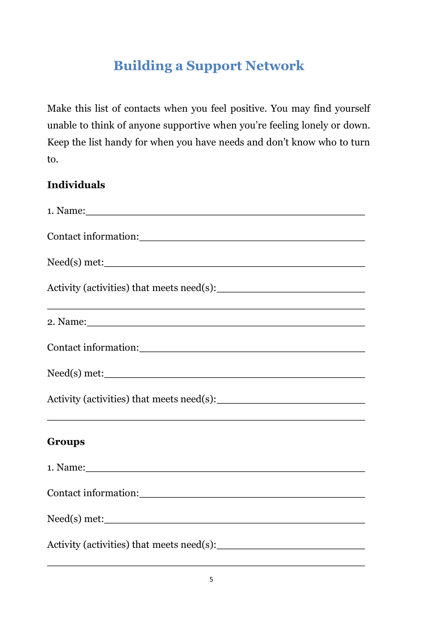 - Develop coping strategies to handle loneliness, sadness, or anger.