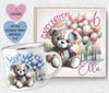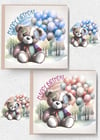 Adorable patch teddy bear & rainbow design. Textless and “Happy Birthday”, 2 colours. 4 PNGs + 4 flat JPEGs with white backgrounds. Sublimation, print