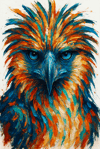 This artwork features the iconic Haribon, also known as the Philippine Eagle or Monkey-Eating Eagle, a distinguished raptor holding the esteemed title of the Philippines' National Bird. Executed in a painterly style, the piece captures the essence of this magnificent species. The deliberate use of navy blue, cherry red, and golden yellow hues may subtly reference the colors of the Philippine flag. Embodying the eagle's natural behavior, which involves soaring high and constantly surveying for prey, the depiction evokes the vigilance of a sentinel, ever watchful for potential threats.