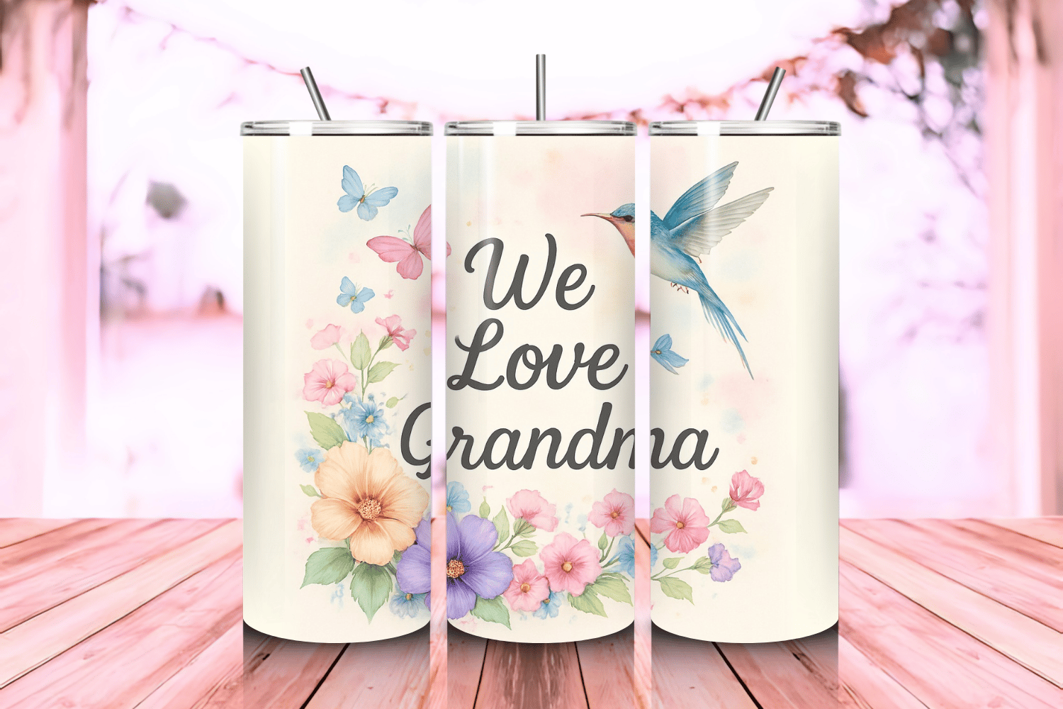 Grandma Women’s Floral Tumbler Wrap PNG – 20oz Skinny Sublimation Design with Beautiful Flower Illustrations & Loving Quote – Perfect Gift for Grandmothers – 300 DPI Instant Digital Download