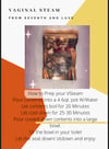 Do you want to VSteam in the comfort of your own home? Well we can help you with that. Did you know VSteam helps to maintain wellness, improves blood circulation, increase intimacy, help Endometriosis, helps Fibroids, lightens menstual cramps, helps tighten the vagina. VSteam is very relaxing and very comforting when done in your own home. Orders your today!! You can get up to 4 steams from this one pack, full instructions are included on how to prep and use your VSteam. This product includes full instructions on how to prepare and use your VSteam comfortably at home. This products works best when paired with our Yoni Foam Soap.