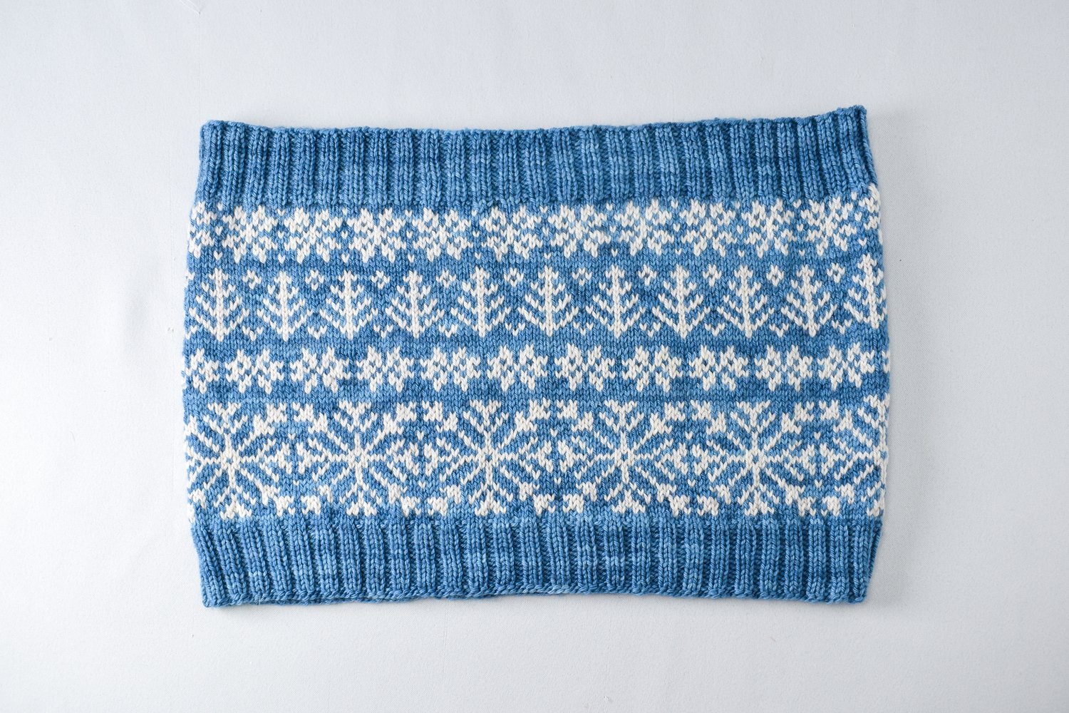 This cowl is the perfect project to knit inside on a cold winter’s day, looking out at the leaden sky. Once it is finished, it will keep your neck warm with snowflakes and bare branched trees as you take a walk in the winter woods.