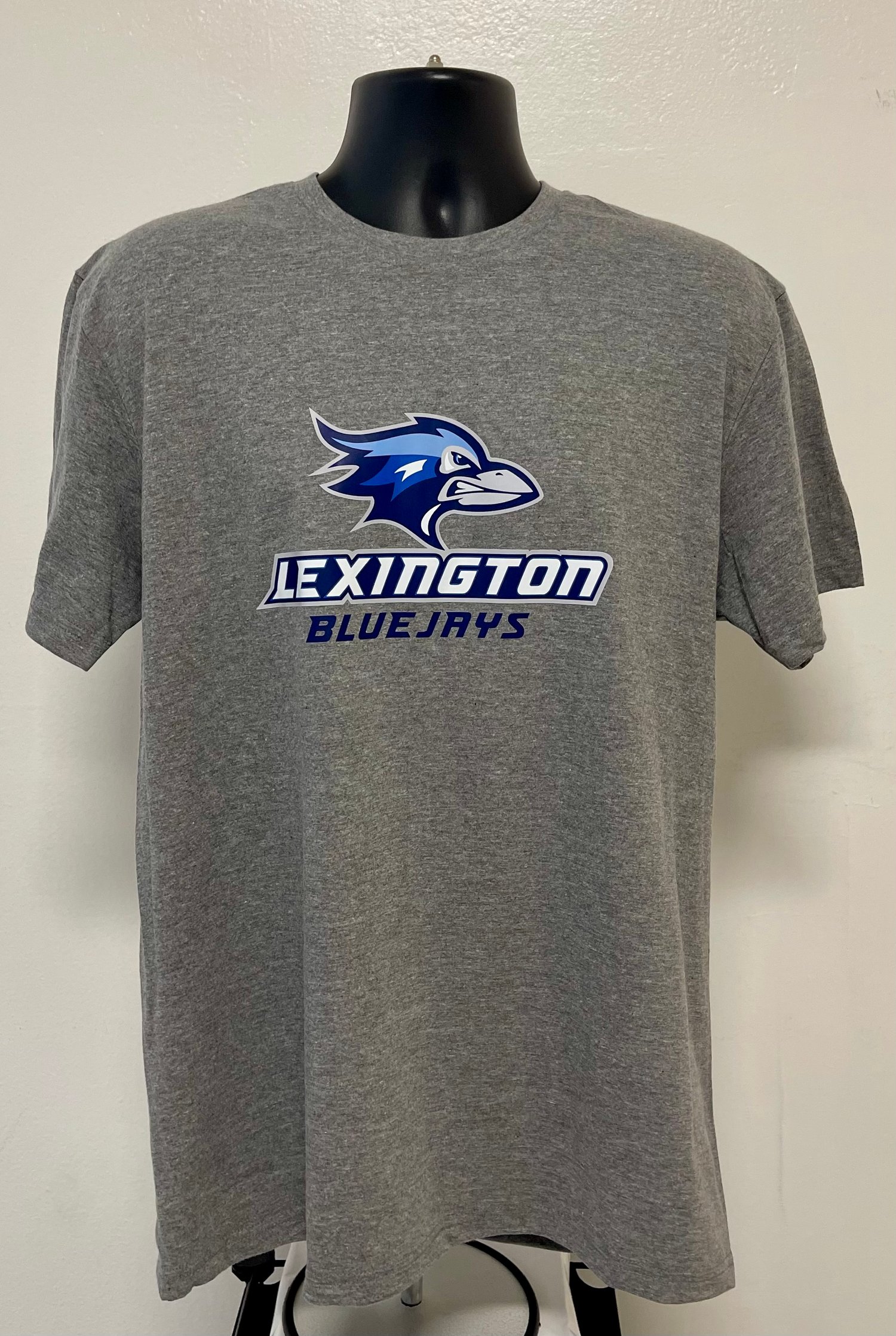 Shirts are available in sizes Small through 2XL and come in grey, royal blue, and Black