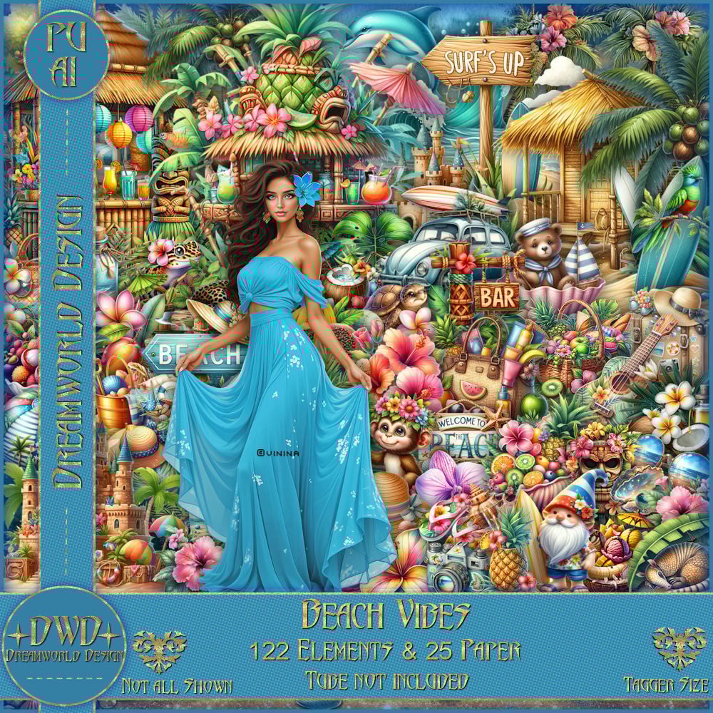 *Beach Vibes* is a tagger-size kit with 122 elements & 25 papers.