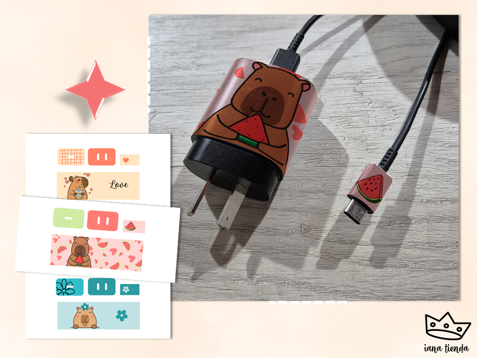 Este set incluye 3 adorables diseños inspirados en capibaras, perfectos para personalizar cargadores de celular y darles un toque tierno y original. Ideal para amantes de estos carismáticos animalitos que desean decorar su cargador con estilo y mucha personalidad.