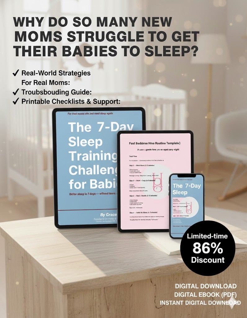 - Full 7-Day Sleep Training Challenge Guide ($49 Value) — Detailed, day-by-day steps anyone can follow.