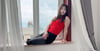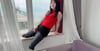 Sally: Dak Amputee Girl - Red clothed girl wearing a pair of prosthetic limbs
