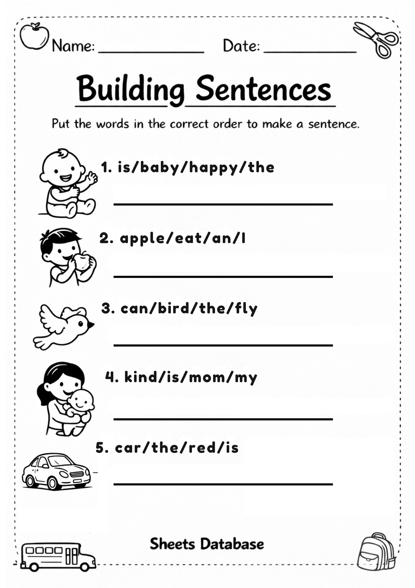Building Sentences Worksheets