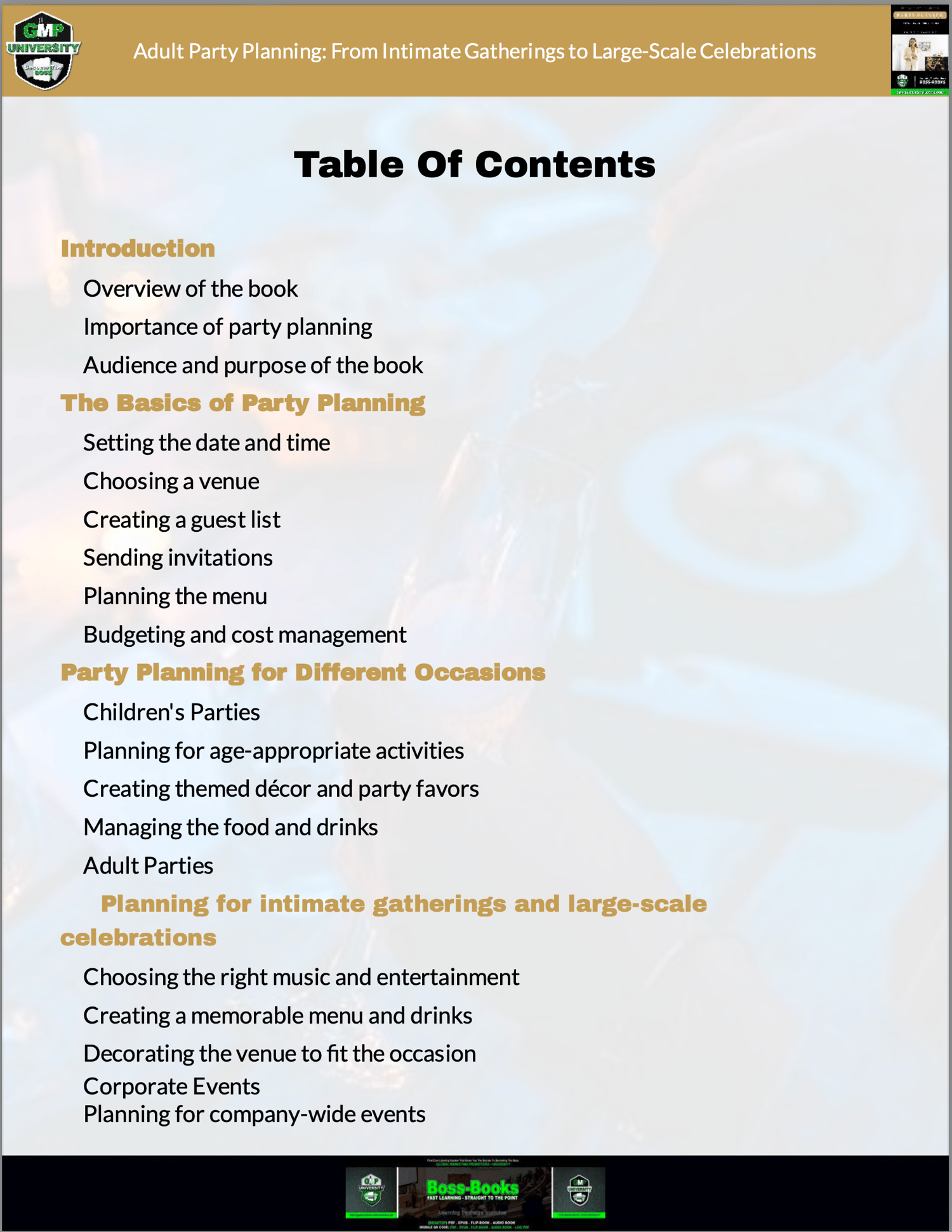 Adult Party Planner Business - GMP University Boss Book - With 5 Free A.I Website Builders