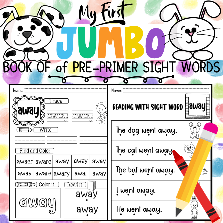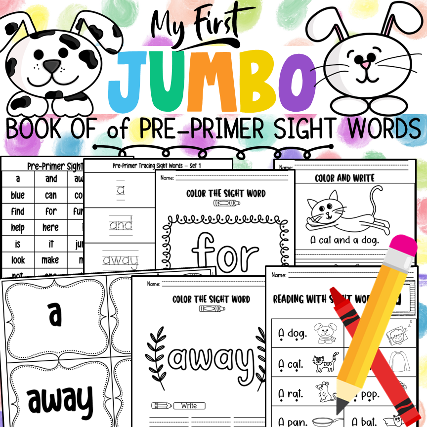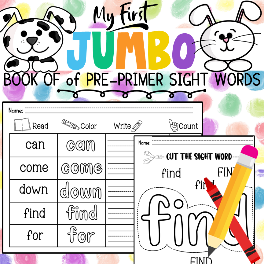 This Jumbo Book of Pre-Primer Sight Words will have your kiddos tracing, coloring, reading along, and counting as they practice their sight words. With so many activities included you will be able to customize packets for students.