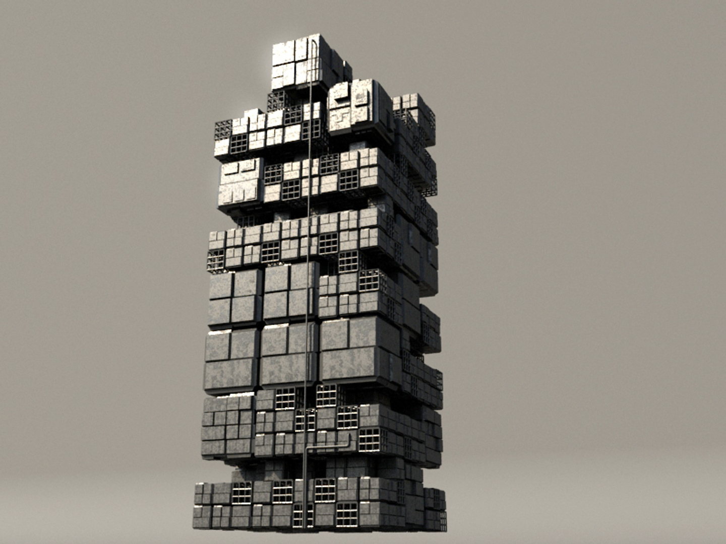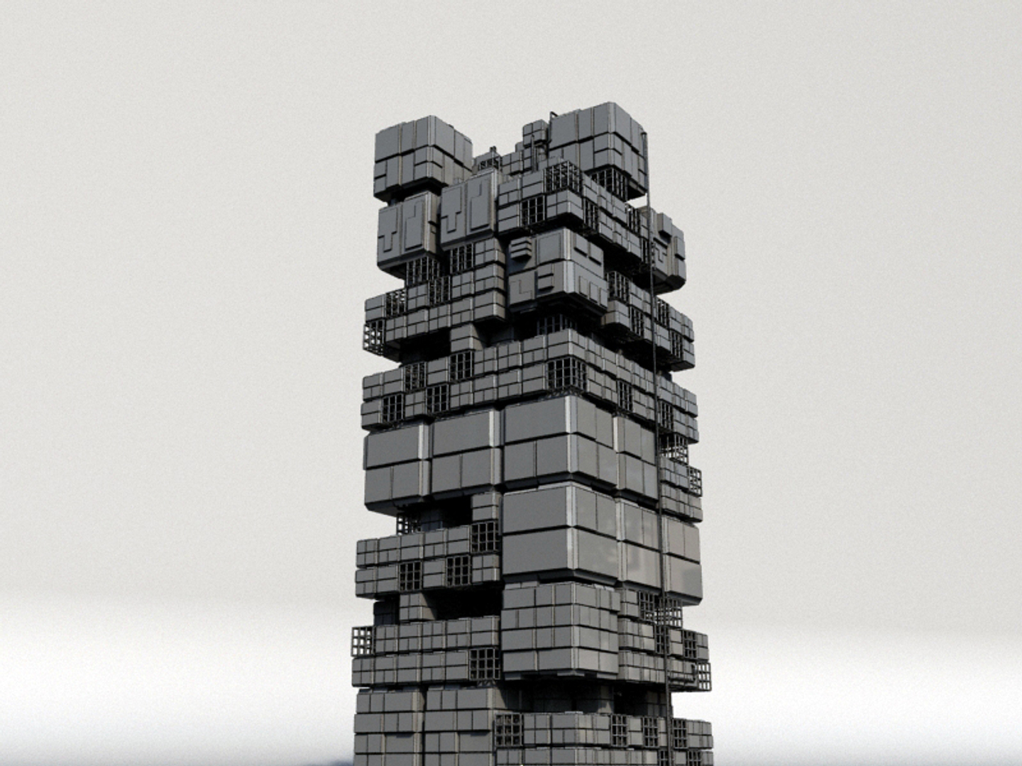 model of sci fi box building with unique detailed and random box postion, perfect for populating sci fi cityscape. easy to texturing, and redy to render. available in multiple format (.max and .obj)