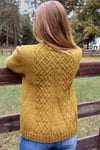 The body of this coat is worked in one piece to the armholes, then the back and fronts are worked separately to the shoulders. The sleeves are picked up and worked down from the armholes, with short-row shaping to shape the cap. The sides are shaped to give the coat an A-line shape, and there is a gusset in the center of the back to allow extra room in the hips.