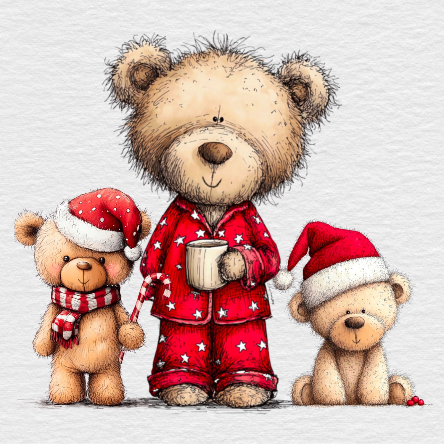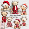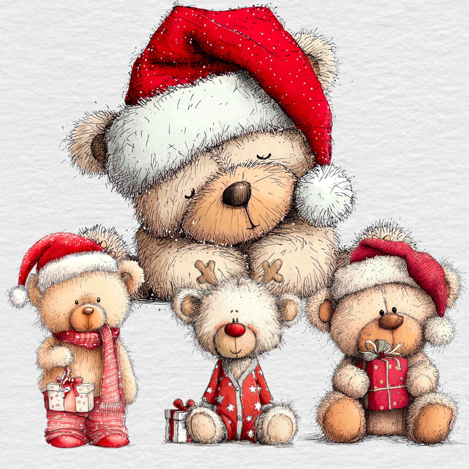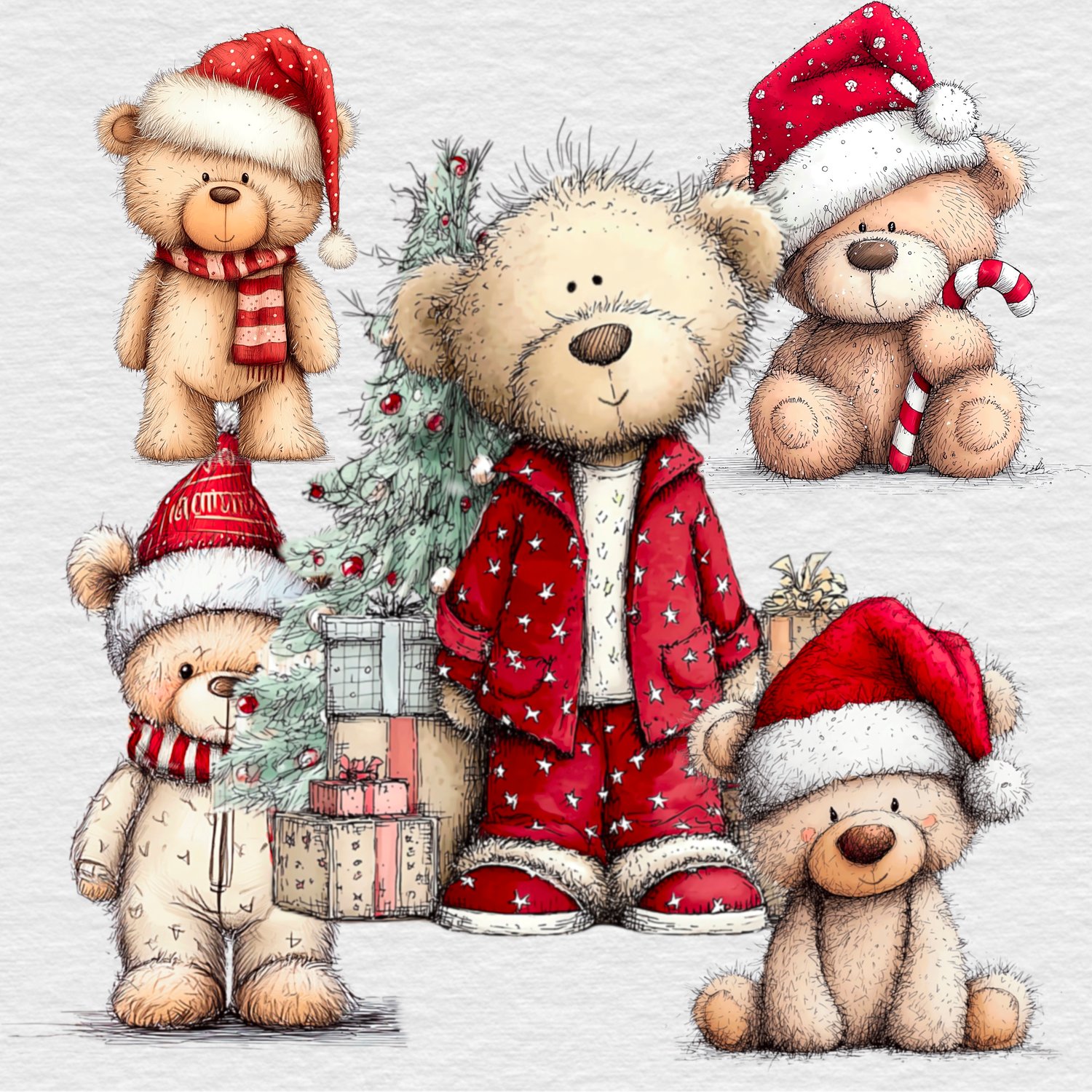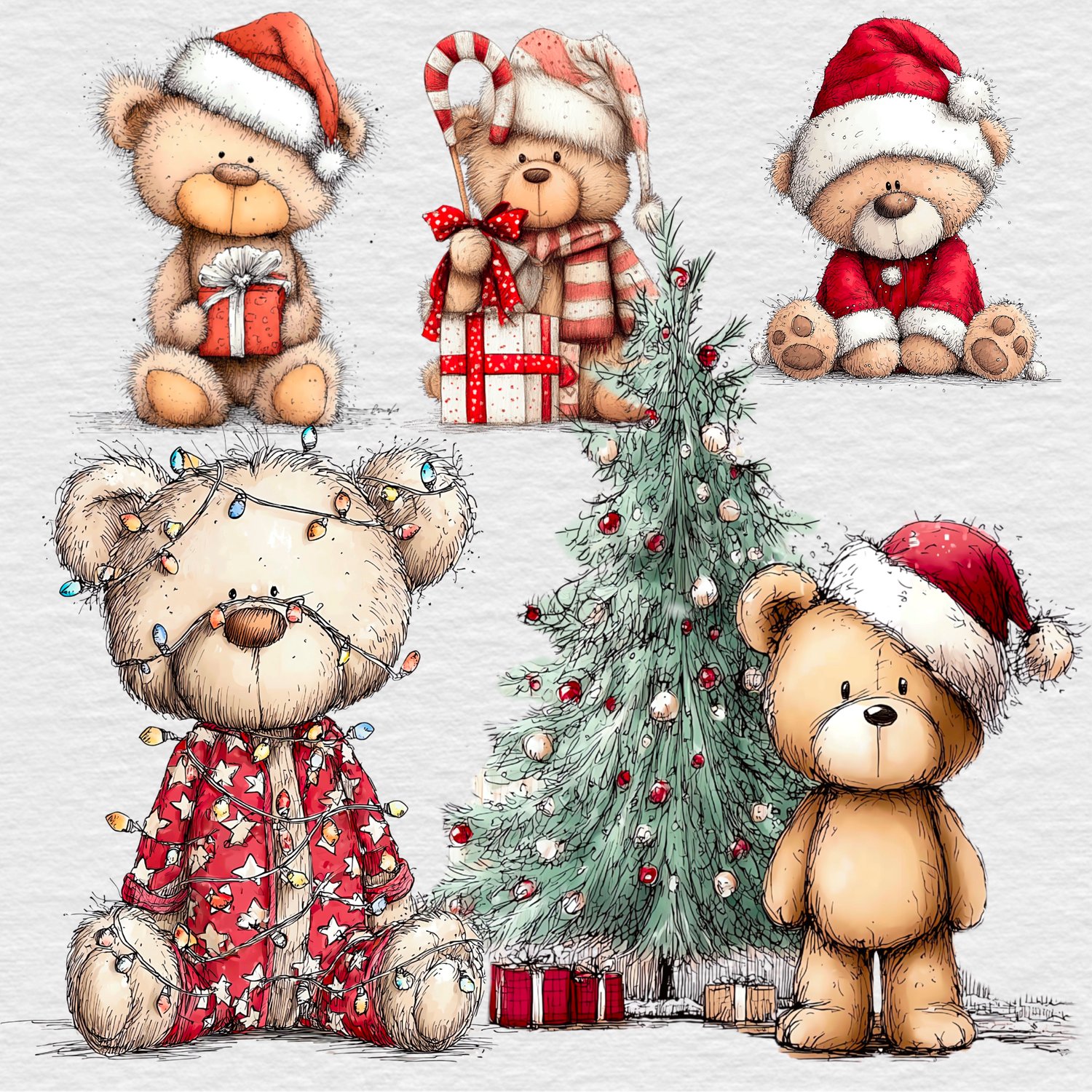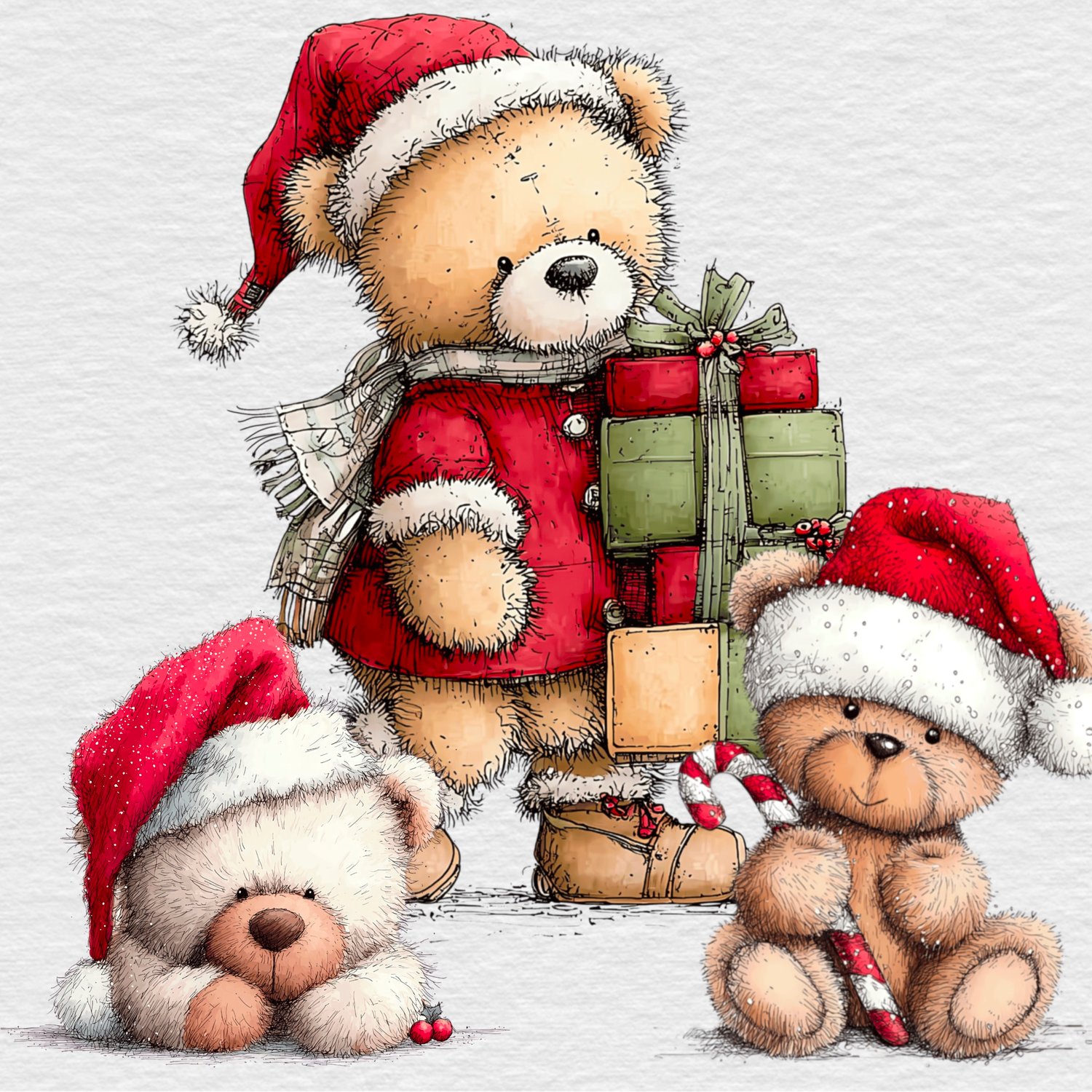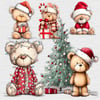 Whimsical Christmas Teddy Bears. 20 PNGs