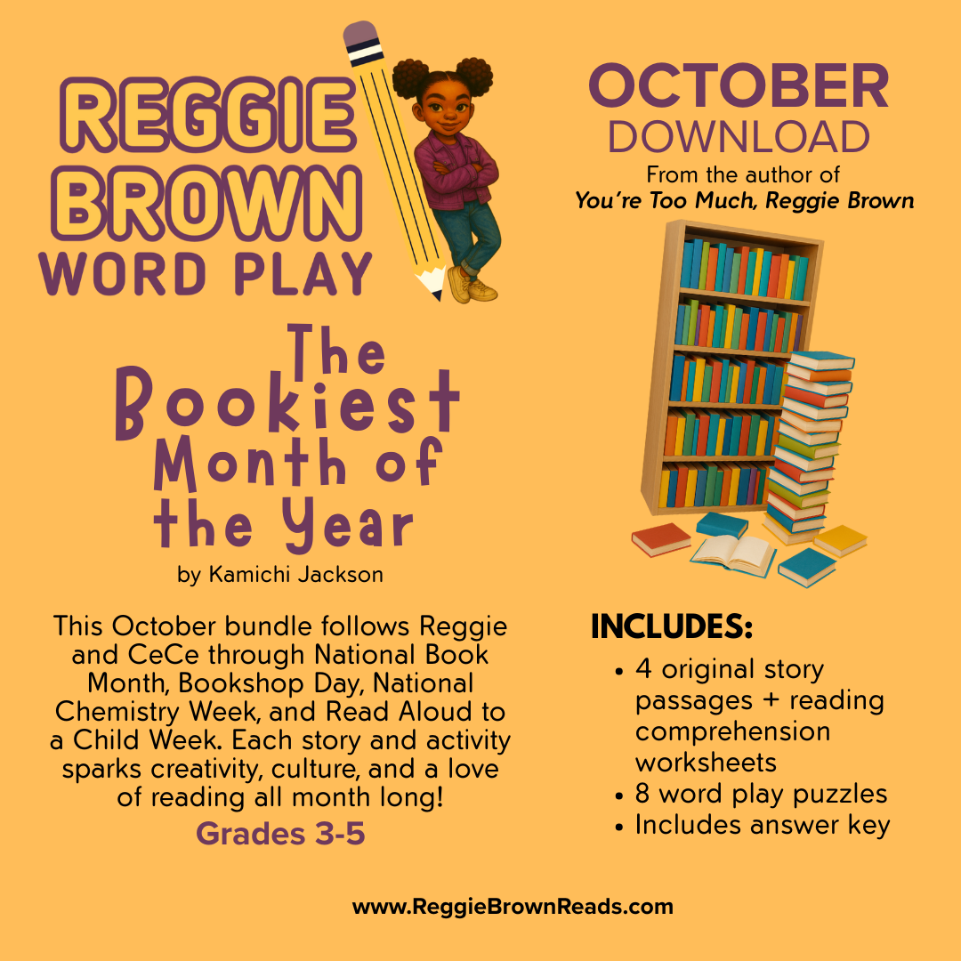 Created by Kamichi Jackson, author of You’re Too Much, Reggie Brown and founder of Reggie Brown Reads™, a digital literacy program encouraging children to read by inspiring them to write.