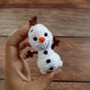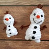 Guía de tejido virtual descargable (archivo PDF). Para elaborar paso a paso 2 versiones de Baby Olaf, tamaño pequeño (9 cm o 3.5 in) y tamaño mediano 12.5 cm (5 in) . Incluye instrucciones detalladas y más de 30 fotos para guiarte.