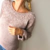 Little Oysters frame the neckline, and a combination of two yarns held together make this a super light and cozy sweater. Or, if you want a very warm winter sweater, you can use one single thread of worsted weight yarn.