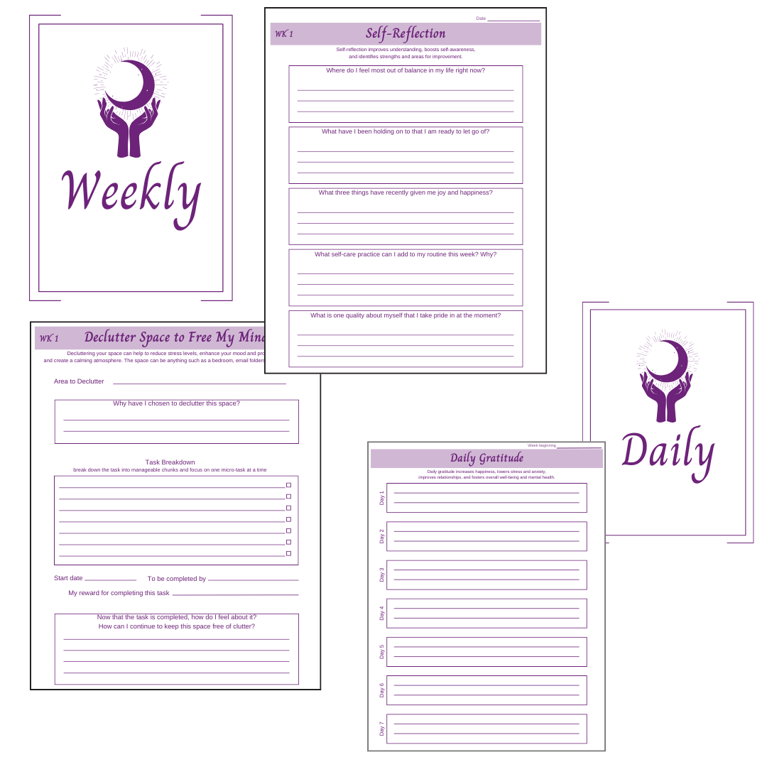 - The ‘Self-Reflection’ pages provide an opportunity to step back and assess your life over the previous week.