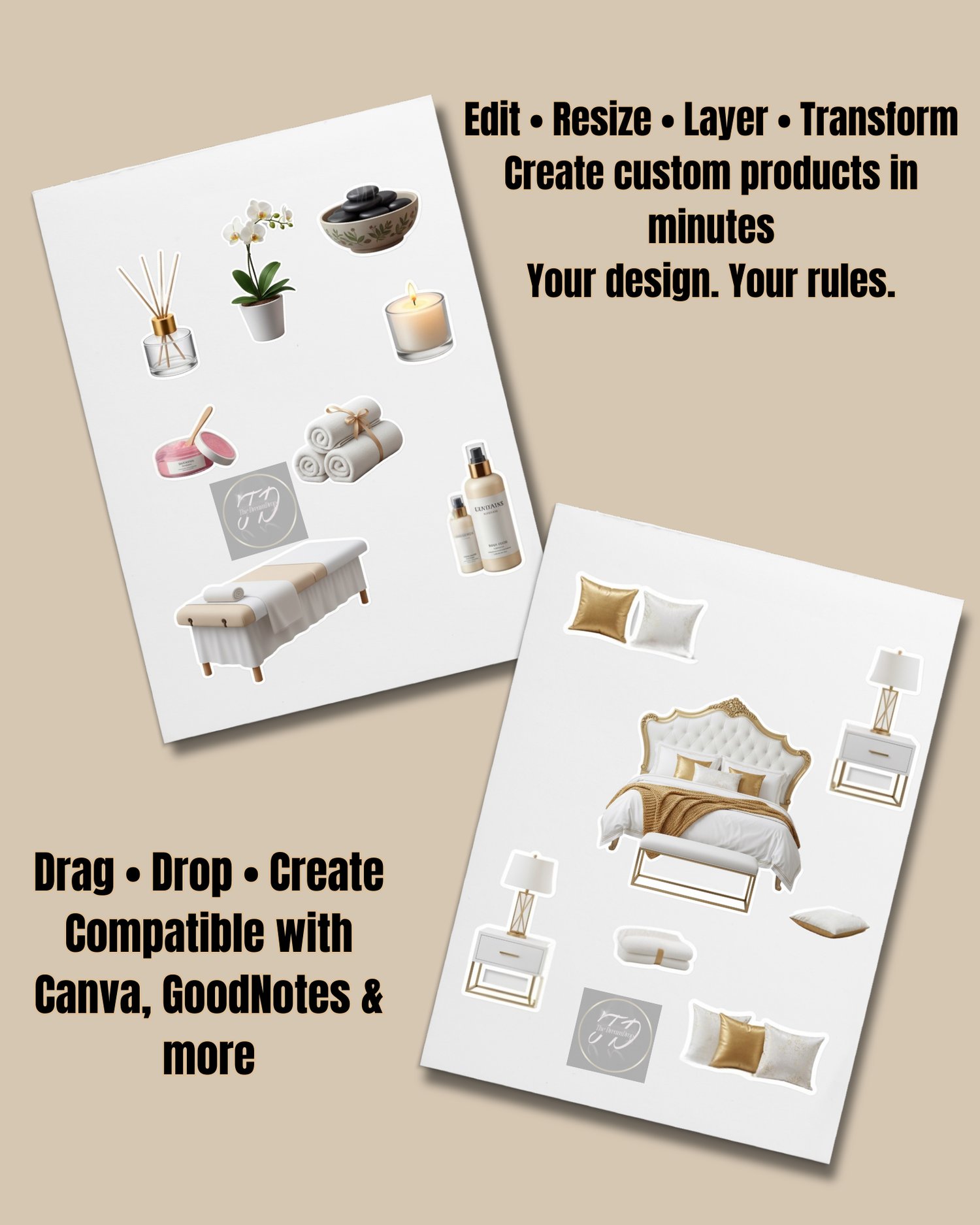 - Build digital journal pages or GoodNotes spreads