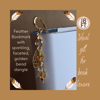 The Feather Bookmark has some weight to it (all the better to make sure it won't fall out of your book) and is approx 4 1/2 inches long, with the beaded dangle being roughly 1 3/4 inches, and is designed to sit along the outside spine of your book., while the golden feather will keep your place as it fits snuggly between the pages.