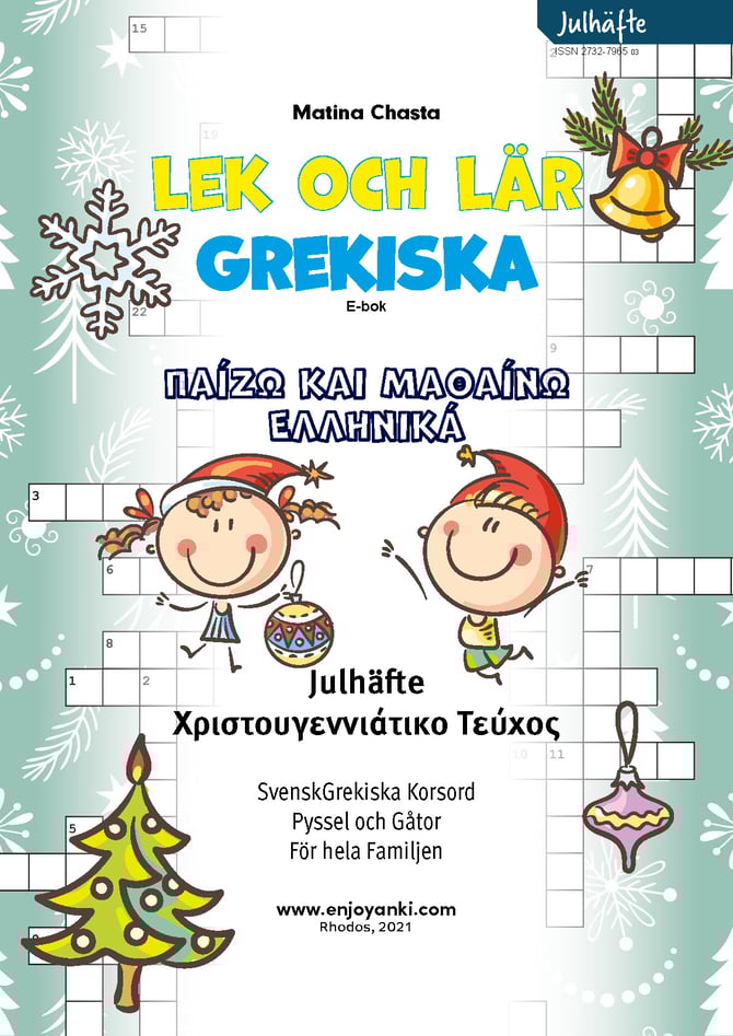 Roliga och lärorika svenskgrekiska korsord, pyssel och gåtor, ett speciellt läromedel för att lära sig och öva på grekiska. Instruktionerna ges på svenska och svaren ska ges på grekiska. En bok som passar hela familjen (32 sidor)