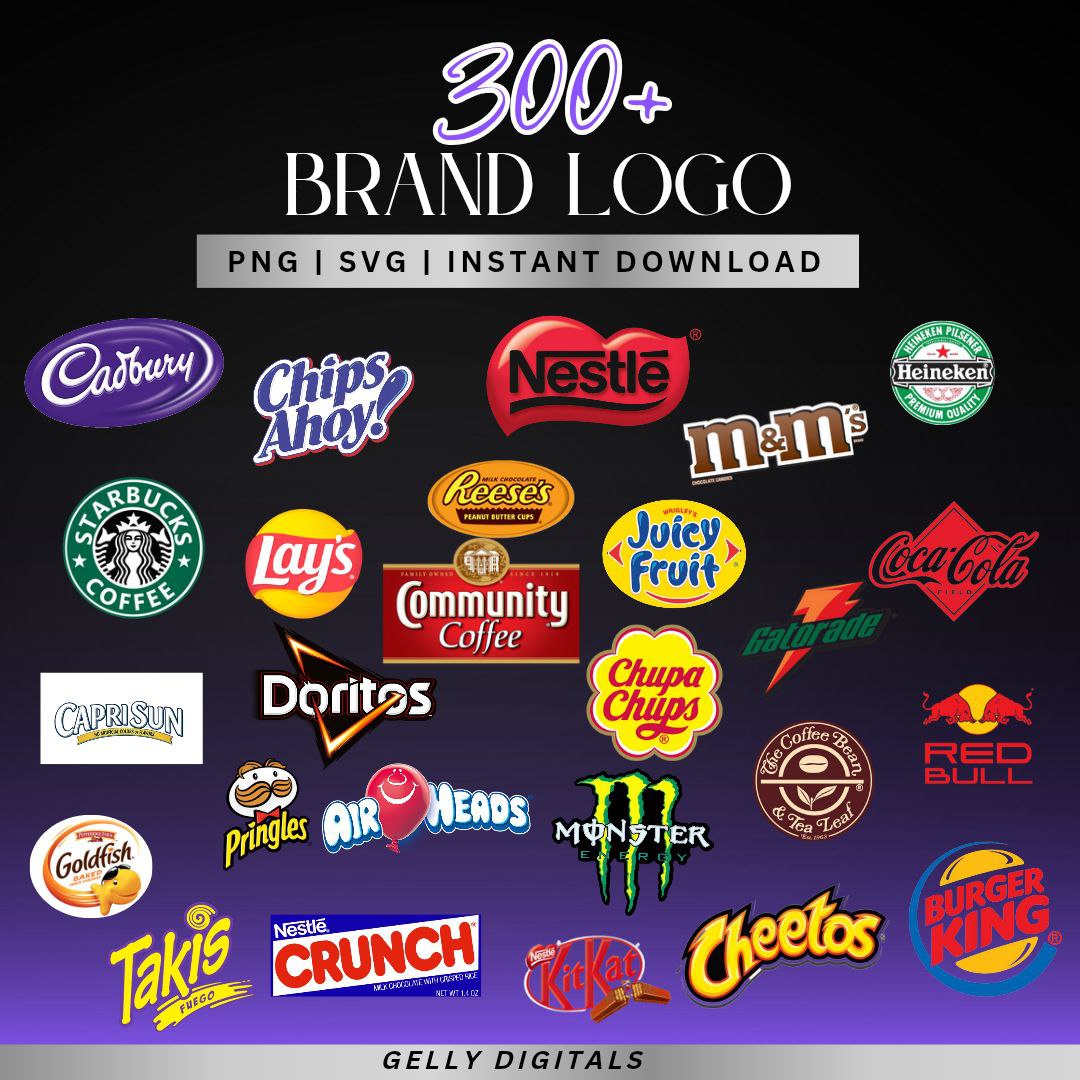 Bring your creative projects to life with this massive collection of 300+ high-quality brand logos in PNG and SVG formats. Perfect for digital design, mockups, crafts, and marketing projects, this bundle includes iconic global brands like Cadbury, Starbucks, Coca-Cola, Nestlé, Lay’s, Pringles, M&M’s, Doritos, Red Bull, Burger King, and more.
