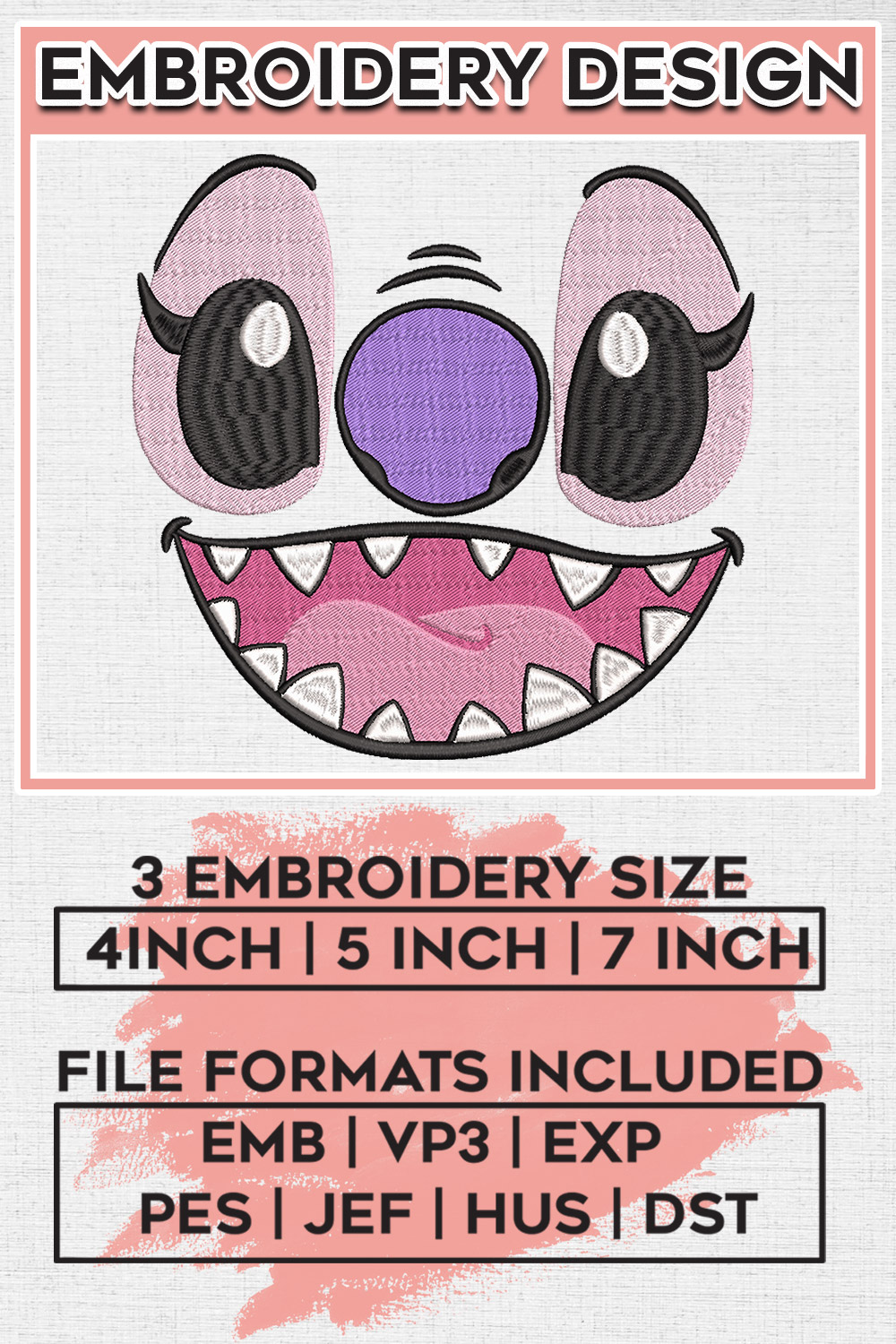Angel Face Stitch Girlfriend Disney Cartoon Embroidery Designs, Lilo and Stitch Machine Embroidery Files, Cartoon Character Machine embroidery designs, Disney, 3 sizes, Digital Download