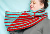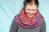 The construction makes a cozy double-layered cowl with no twists like a normal cowl wrapped double around your neck, and with lots of different ways to wear it, tight or loose.