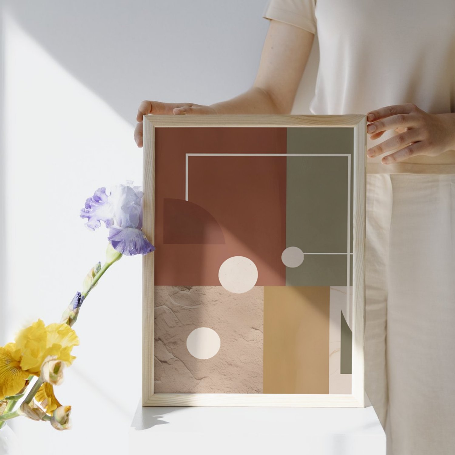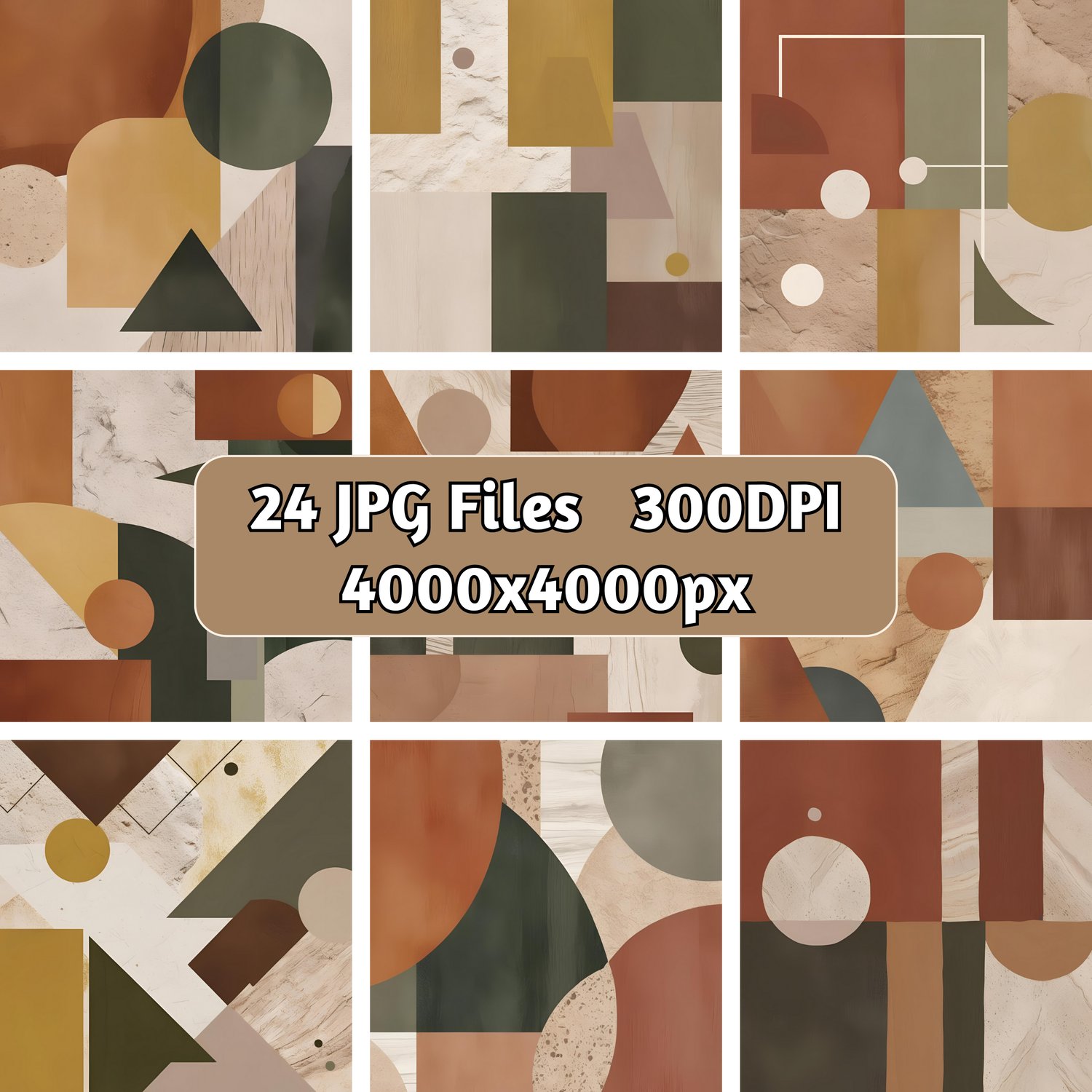 Bring a touch of structured elegance to your designs with this unique collection of 24 geometric abstract backgrounds. Featuring clean shapes like triangles, squares, and circles layered over subtle natural textures—such as stone, wood grain, and rough paper—these backgrounds create a harmonious balance between minimalism and organic design. The earthy color palette includes burnt orange, deep green, ochre yellow, and soft gray, making these textures perfect for a relaxed, boho-inspired aesthetic.
