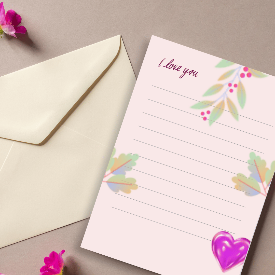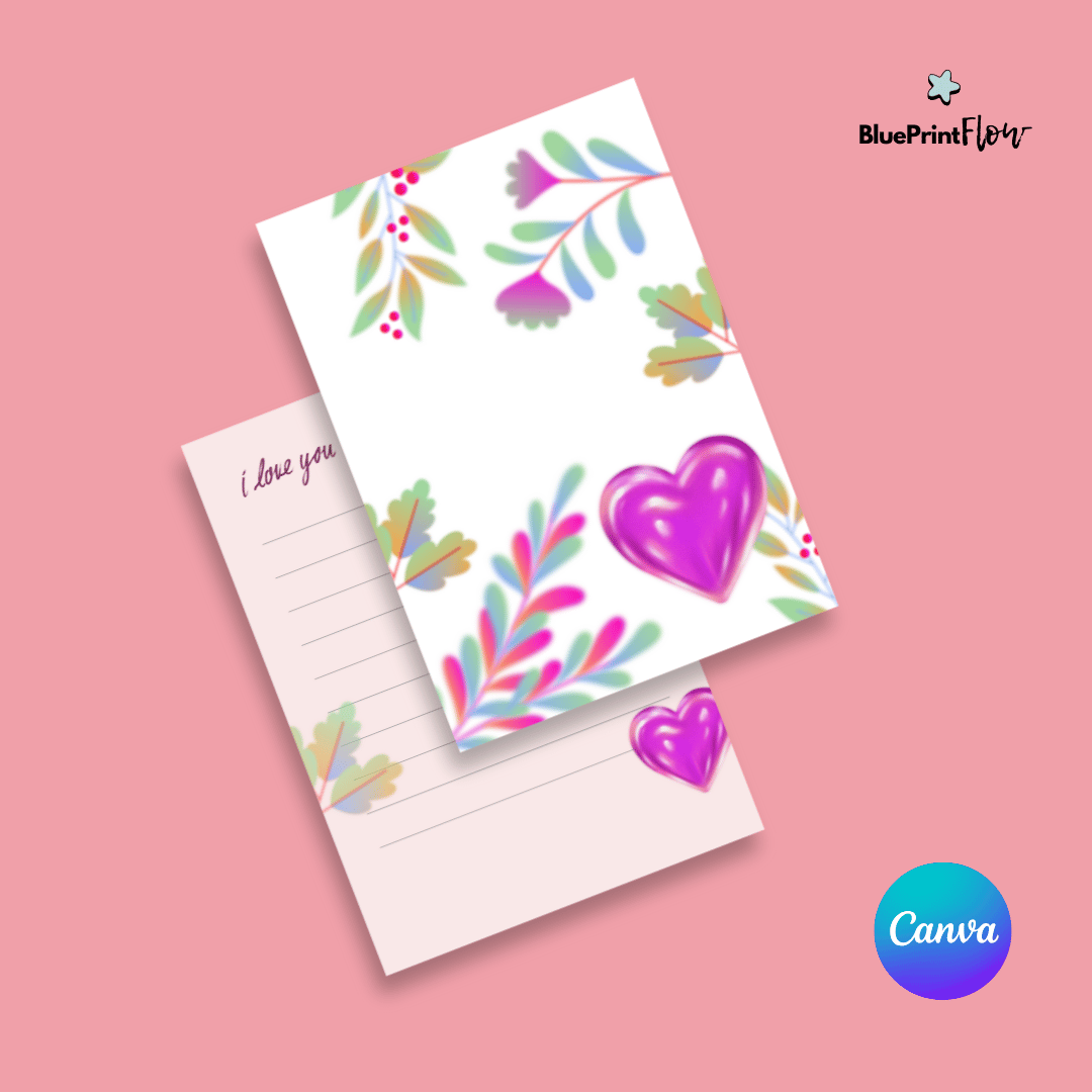 This postcard features a romantic floral design with vibrant multicolored elements and a shiny pink 3D heart that symbolizes affection and care. The front is perfect for inspiring emotions, while the back provides space to write a heartfelt message, with delicate floral accents, soft pink tones, and the phrase "I love you" elegantly lettered at the top.