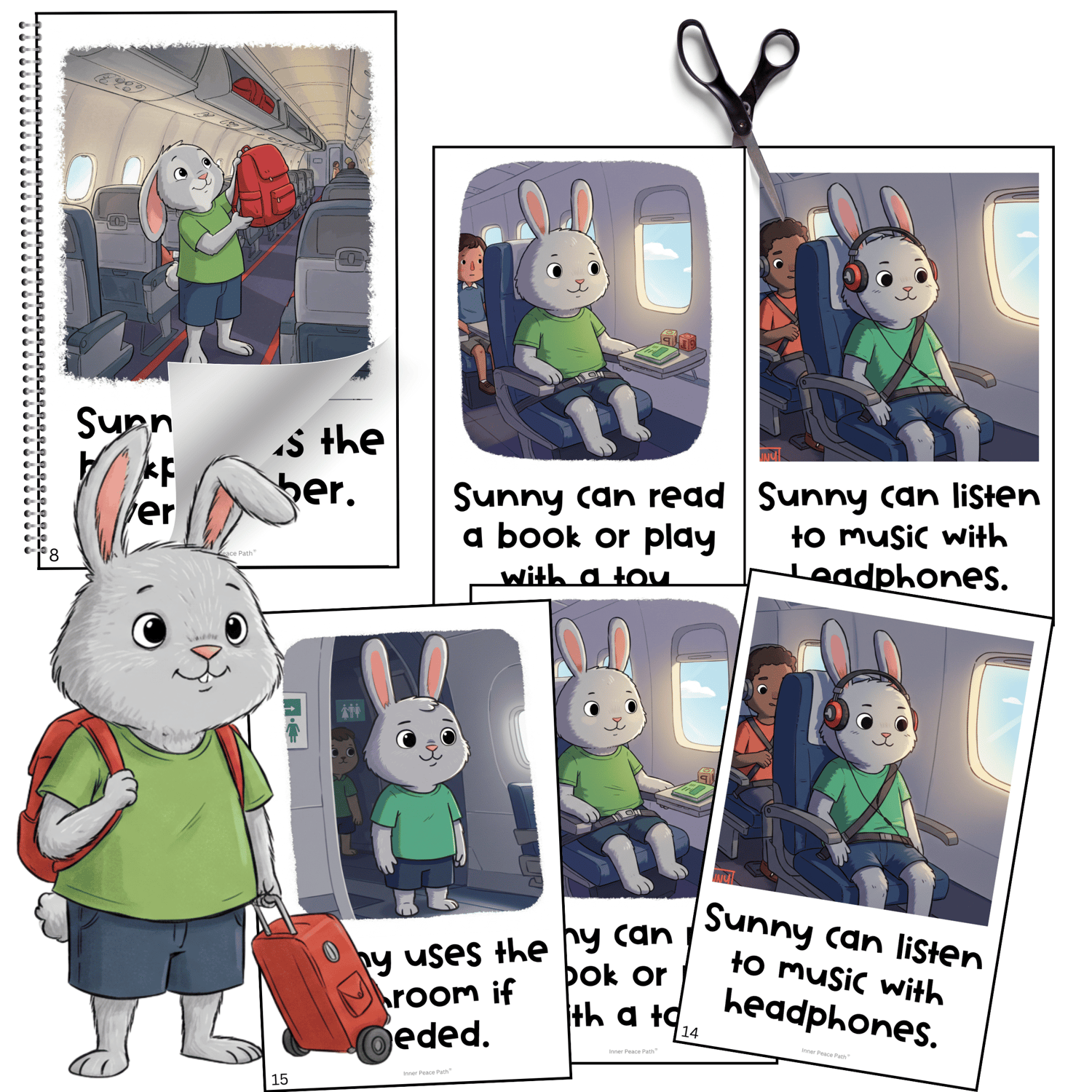 π° It uses Sunny the Bunny across all steps to guide children through what happens on an airplane trip.