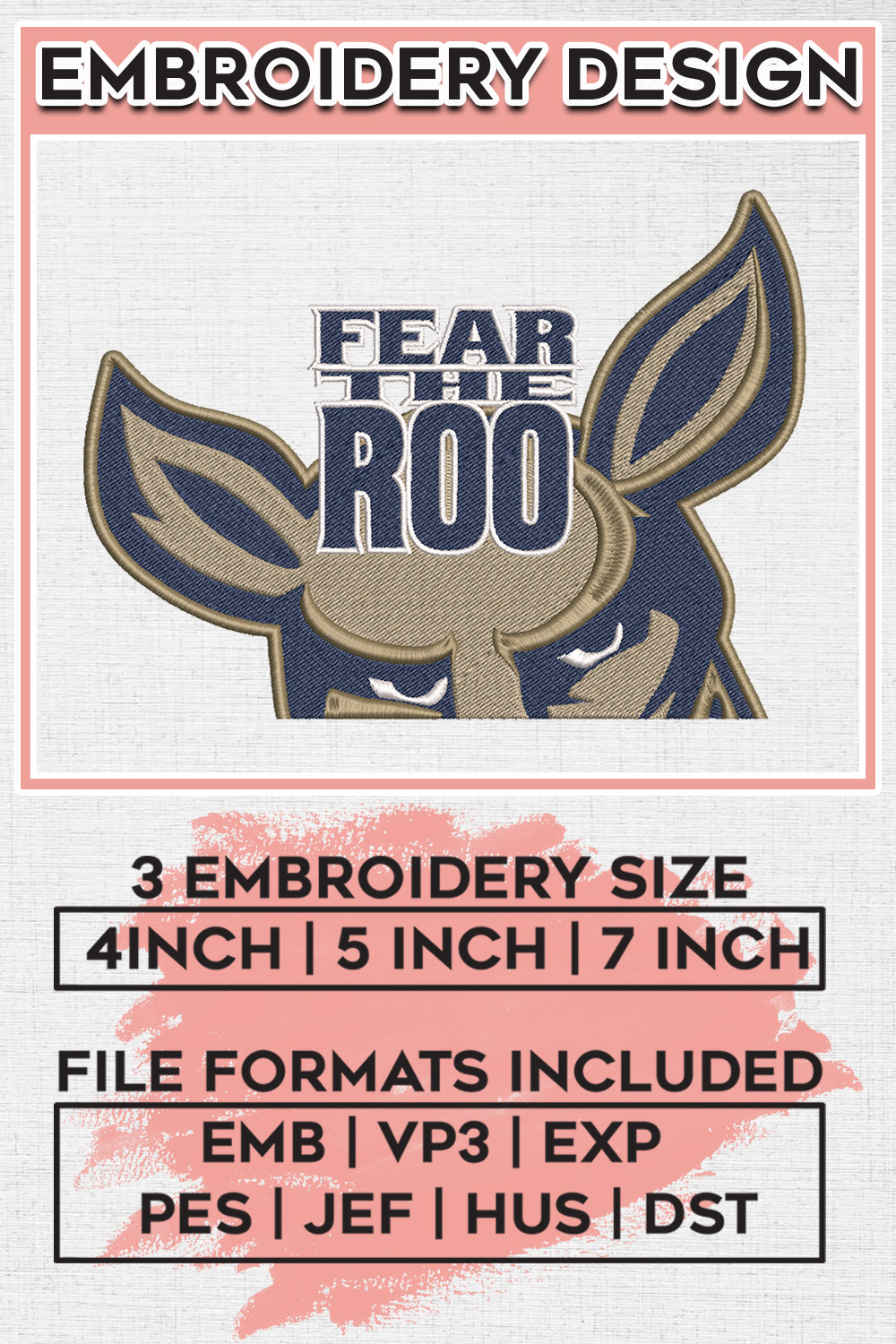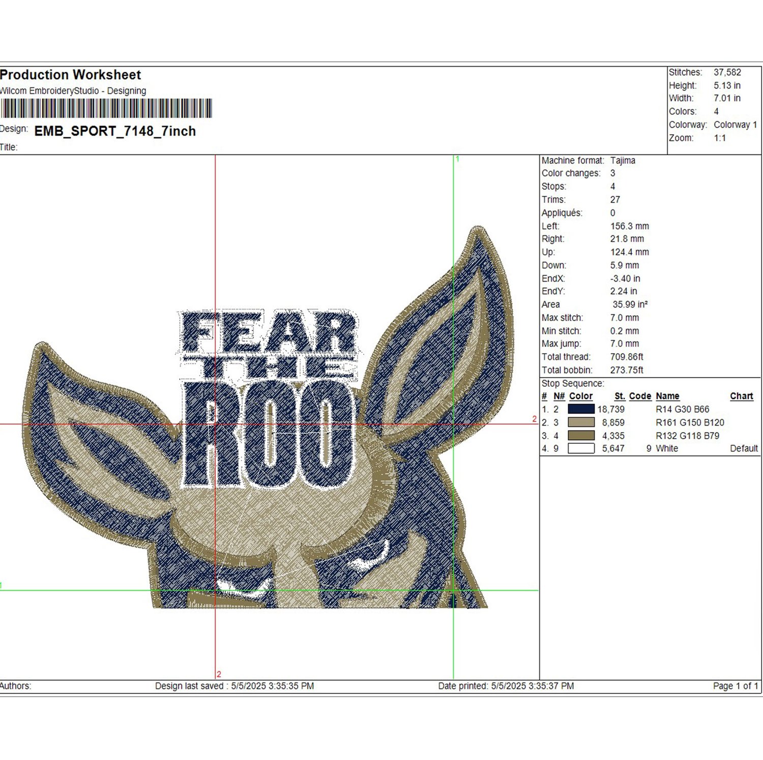 Fear The Roo Embroidery Designs, NCAA Akron Zips Machine Embroidery Files, NCAA Logo embroidery designs, Ncaa Zips Logo, Digital Download