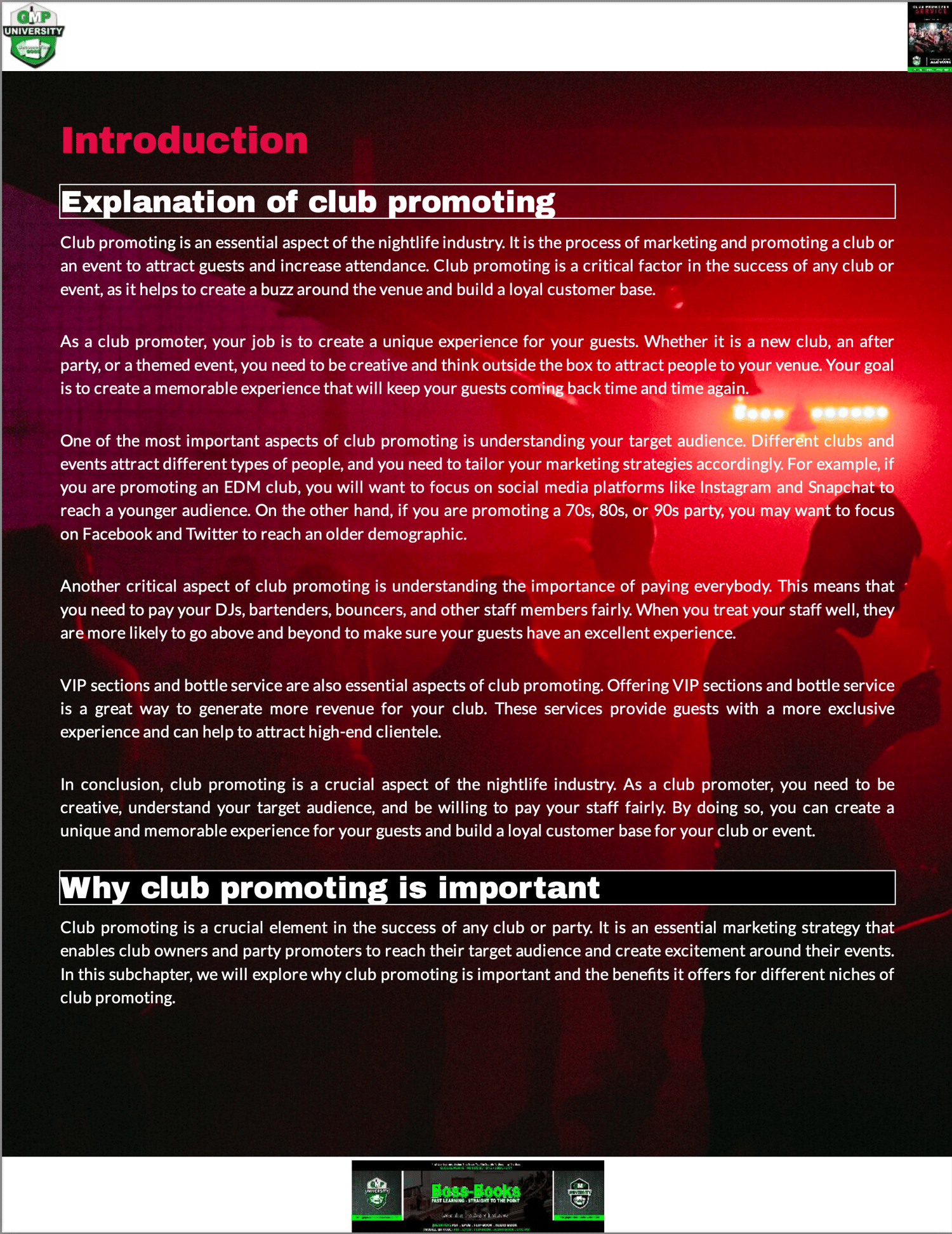 Club Promoter Business - GMP University Mobile Boss Book - With 5 Free A.I Website Builders