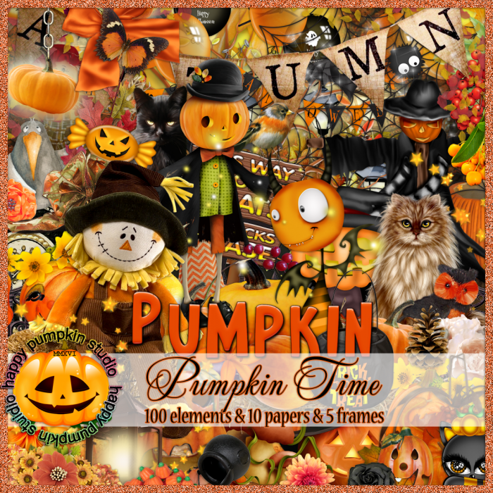 Pumpkin time is a kit chock full of pumpkins and all kinds of fun.100 non repeated elements 5 frames and 10 papers tagger sized kit.