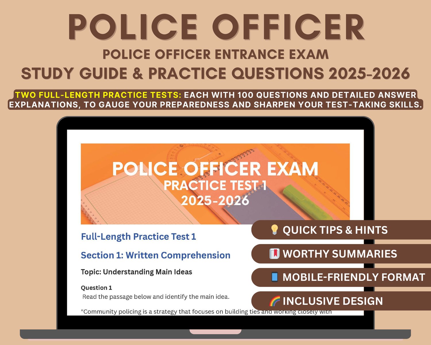 📘 Police Officer Exam Study Guide 2025-2026 | Police Entrance Exam Prep Book with Practice Tests 🚓