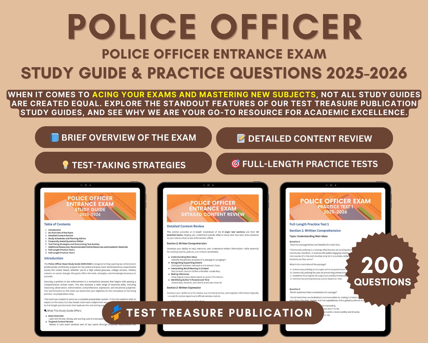This all-in-one Police Officer Exam Study Guide 2025-2026 is your trusted companion to help you pass the police entrance exam with confidence and launch your law enforcement career.