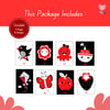 High Contrast Baby Flashcards Printable – Black White Red Visual Cards (8 Designs)